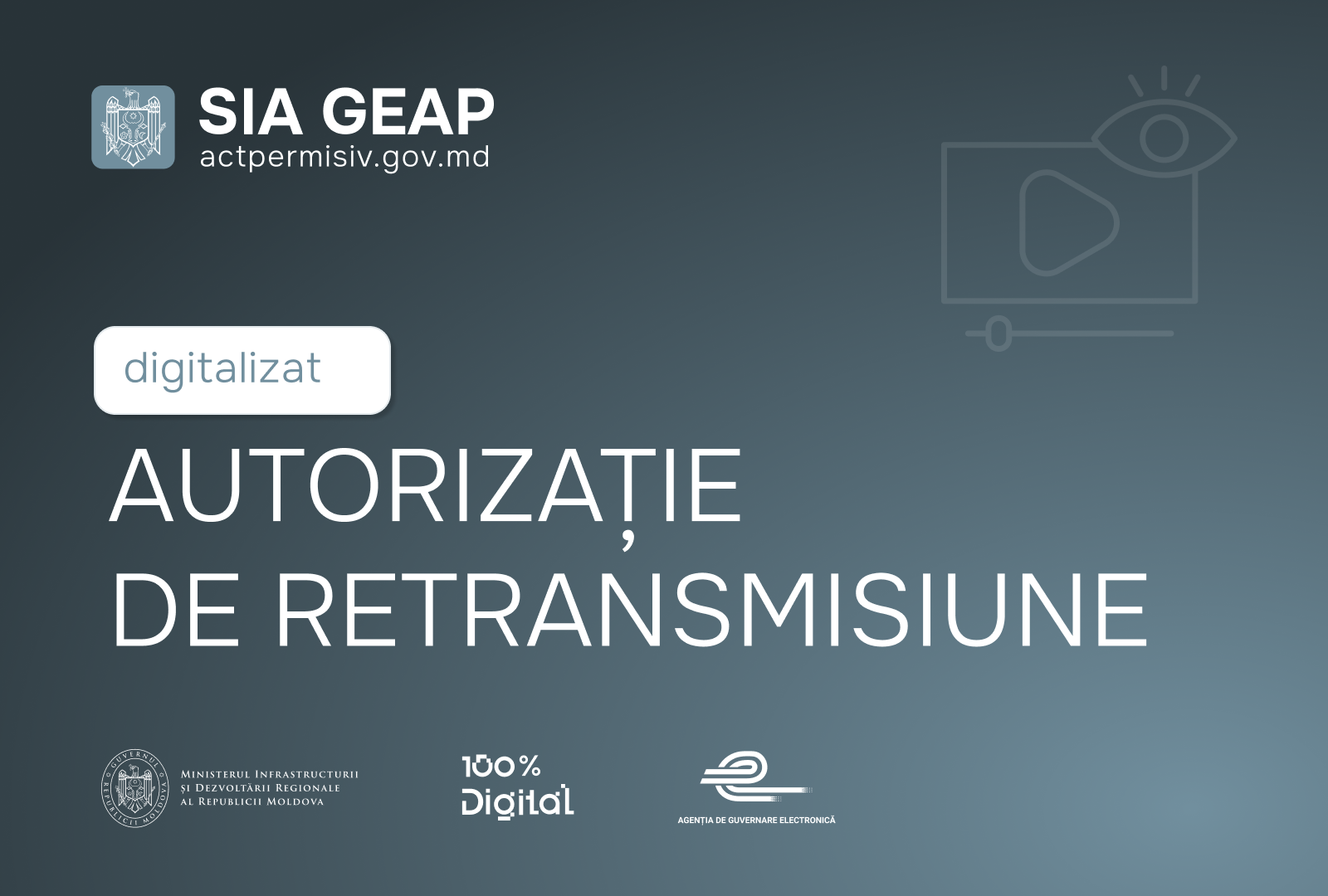 Starting April 2025, media service distributors in the Republic of Moldova can request and obtain retransmission authorization exclusively online through the Mechanism for Managing and Issuing Permissive Documents (MMIP). This service has been digitalized by the Electronic Governance Agency at the request of the Audiovisual Council of the Republic of Moldova (CA) to simplify and expedite the approval and issuance process of authorizations.
