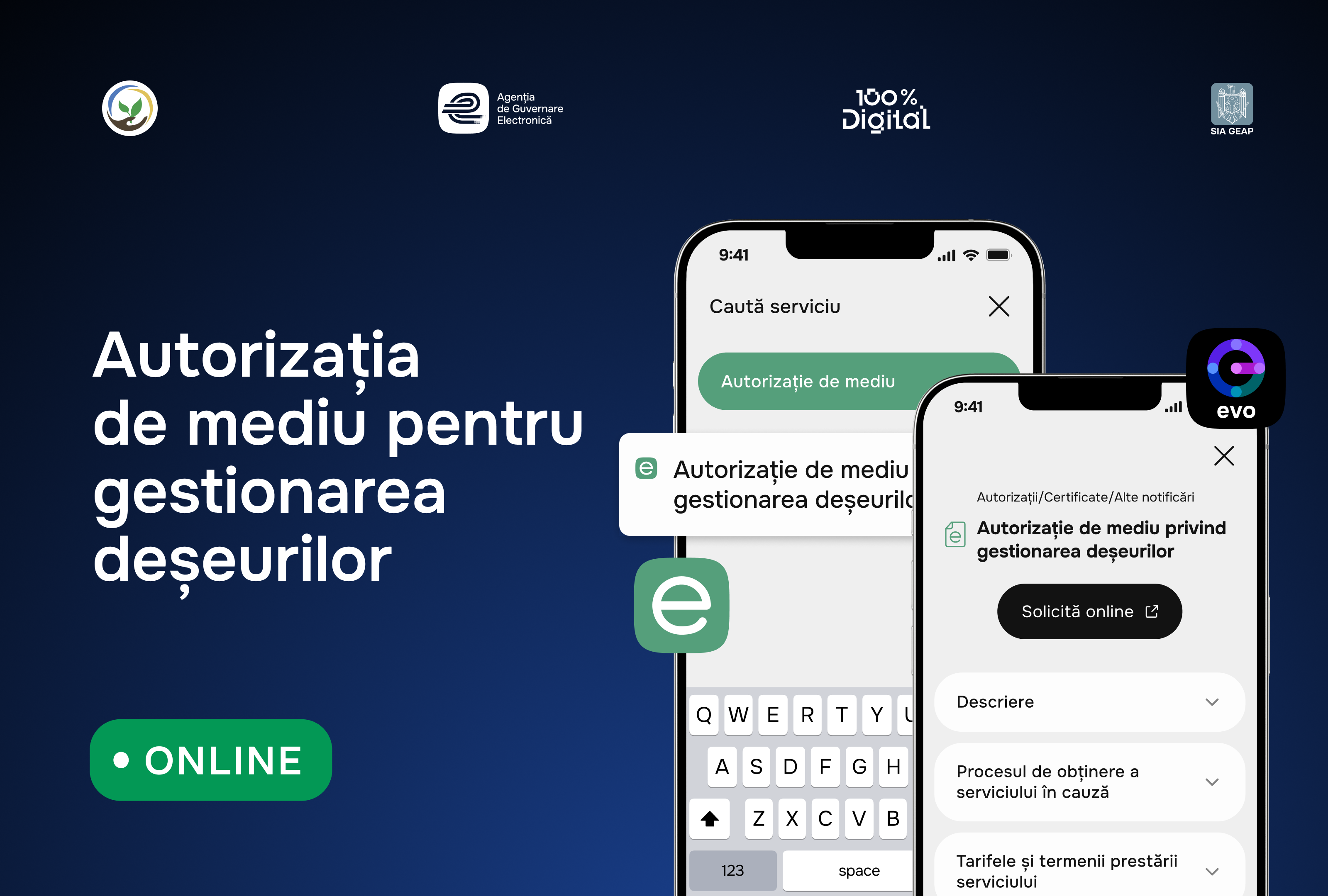 Digitalizarea serviciului oferă antreprenorilor și companiilor flexibilitate în alegerea modului de interacțiune. Dacă anterior serviciul era parțial digitalizat prin Sistemul informațional „Managementul Deșeurilor", noua versiune asigură un proces complet digital, aliniat la cerințele Legii nr. 160/2011, care prevede emiterea actelor permisive exclusiv prin Sistemul Informațional Autorizat de Gestionare și Eliberare a Actelor Permisive (SIAGEAP). Toate actele permisive pot fi descoperite și accesate direct de pe portalul EVO sau din aplicația EVO.